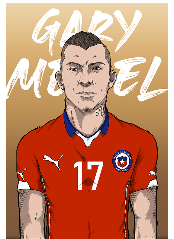 Ilustración 3 de 4 de futbolistas participantes de la generación dorada en el año 2015 de la selección Chilena, Gary Medel.